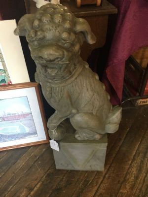 Vintage Chinese Stone Foo Dog Statue. 32" tall and quite heavy. Available for inspection and pickup at the shop.