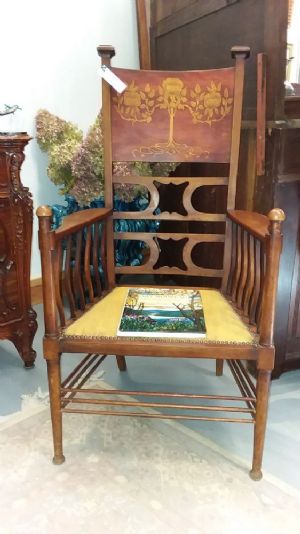 Art Nouveau, English chair, mahogany with floral backArt Nouveau chair, c. 1890-1900, from England. Decorative back with gold flowers nd ribbons,mahogany, excellent condition, rare. $950.00