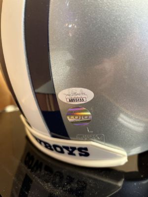 Emmitt Smith Full Size Signed Dallas Cowboys Helmet JSA/Lojo certificationsA Hall of Famer Gator Great All time Rushing leader Super bowl Champion Emmitt Smith signed Full size Riddell helmet. Originally authenticated by Lojo and verified by JSA Authentics. Item comes with a full Letter and Display case $599.00