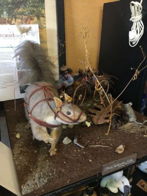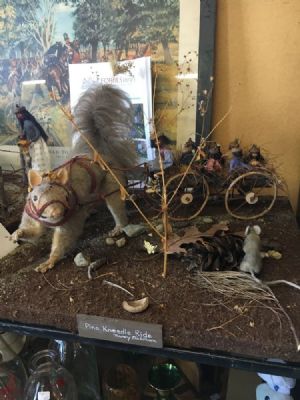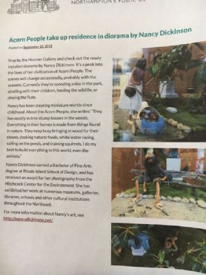 Nancy Dickinson Acorn People 'Pine Kneedle Ride'Nancy Dickinson Acorn People Diorama 'Pine Kneedle Ride'. Made by artist Nancy Dickinson on a 17" x 17" base. See write-up in photos. This is very fragile no shipping is available - pickup only. $300.00