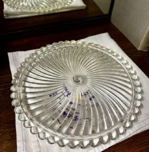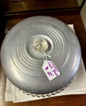 Aluminum cake taker with glass plate – Porters Corner Antiques