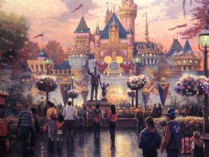 Disneyland 50th Anniversary by Thomas Kinkade 178/350 P/PDisneyland 50th Anniversary By Thomas Kinkade publisher proof #178 of 350 size 18"x 27" canvas $1,295.00