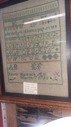 Sampler by hannah Hancock, March 7, 1796, with alphabet and flowers. Rare, very fine condition. No discernable fading.