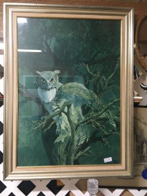 Signed Great Horned Owl Picture - Bruce LittigLarge glass covered picture of a great horned owl. Signed by artist Bruce Littig. Available at the shop for inspection and pick up. $120.00