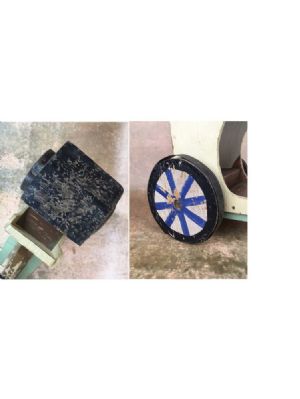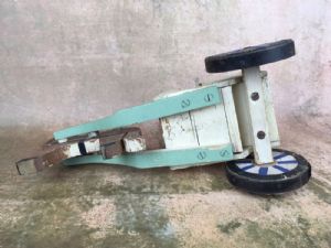 Folk art horse and buggyFolk art horse and buggy, wagon or handcart. This is a horse or pony pulling a covered cart, with a weathered patina from use. The driver would sit inside the cart, rather than there being an outside seat for him. Or perhaps the horse had a rider? Sturdy and in solid used condition. The wheels have the interesting feature of having the spokes painted on both sides, and are wrapped in metal. Wonderful addition to a folk art or primitive toy collection and also for any holiday decor. Measures 15.25 inches long by 7 inches tall by 8.5 inches at widest. ITEM ID 666 $98.00