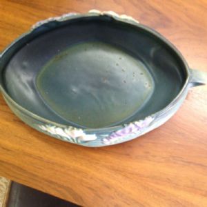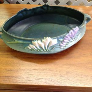 Beautiful Roseville bowl. Measures 13" long and 8" wide. Please call the store for more details. We will be happy to ship.