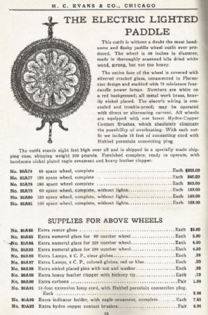 This is a replica of one of the most sought after collectible game wheels originally manufactured by the HC Evans CO. Chicago IL in the early 1900's. This wheel was professionally constructed by Roy Arrington of Victorian Casino Antiques, Las Vegas, NV. In the 1980's. The wheel works perfectly and comes with a shipping crate. The original lighted wheels are very rare and thus quite expensive. This amazing copy is in excellent working condition. The wheel on the stand is 84" tall and 57" in diameter. We can safely ship this item, please ask for a quotation. $7,250.00