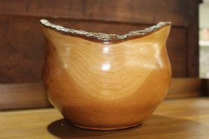 10 x 9 x 7 hand made turned wood bowl with w/ live edge. $35.00